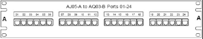 例如,連接到圖4.7.4-3所示配線架第一個(gè)位置的線纜可能包含如下標(biāo)簽:AJ05-A01/AQ03-B01。 AQ03 機(jī)柜中的同一根電纜將包含以下標(biāo)簽:AQ03-B01/AJ05-A01。如圖6 如圖。